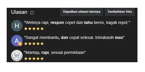 Selain menawarkan pembuatan website, kami juga menawarkan jasa perbaikan dan perawatan website yang sudah dimiliki sebelumnya (bukan dibuat di sini) untuk memperbaiki masalah teknis, desain, atau fungsi pada suatu website, seperti: selengkapnya ⇢