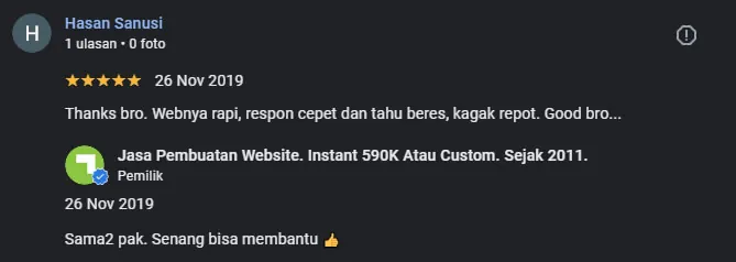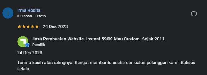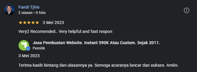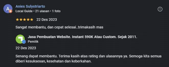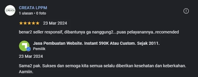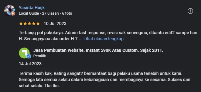 Setelah pesanan dan pembayaran diterima, kami akan mengonfirmasi pesanan dan pembuatan website segera diproses.
